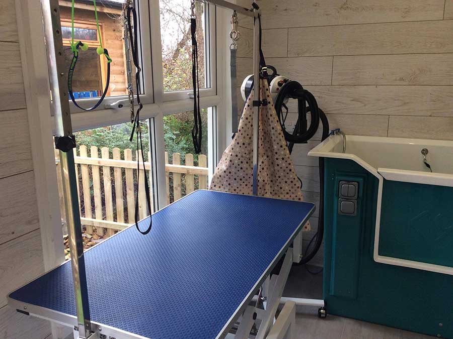 My garden salon is light and spacious and as I only work on one dog at a time, it will never feel busy and over-noisy. I use a hydrobath which penetrates shampoo deep into your dogs coat to not only get the coat squeaky clean, but it also gives an invigorating massage and drastically reduces bathing time (unless they’re enjoying it in which case I will happily indulge them).